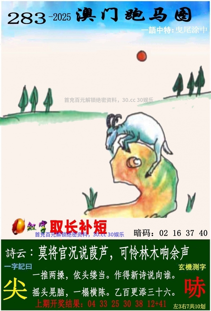 281期:〖杀②尾→3.5尾〗开:羊47准